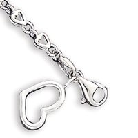 Sterling Silver Solid Fancy Heart Link Anklet - 10 Inch - Lobster Claw - 7.8 Grams in Sterling Silver - - Product Attributes: - Fancy Lobster Closure -- Polished -- Solid - - JewelryWeb Style: QTA32929SS - FREE gift-ready jewelry box