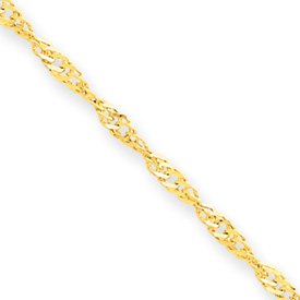 14k 1.6mm Singapore Chain Anklet - 9 Inch - Spring Ring - 1.0 Grams in 14k Yellow Gold - - Product Attributes: - Solid -- Polished -- Spring Ring - - JewelryWeb Style: QTA50221Y - FREE gift-ready jewelry box