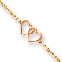 Buy 14k Two-Tone Double Heart Anklet - 10 Inch - Spring Ring Now