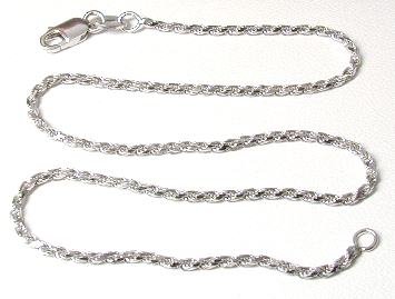 White Gold Rope Ankle Bracelet - 2.6 grams of 14k white gold (10 inch long ) - 1/16 inch wide x 10 inch long - JewelryWeb Style: GB4762W - FREE gift-ready jewelry box