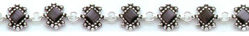 Buy Ankle Bracelet - Sterling Silver Polished Antiqued Black Cats Eye Diamond Anklet (10 inch) Now