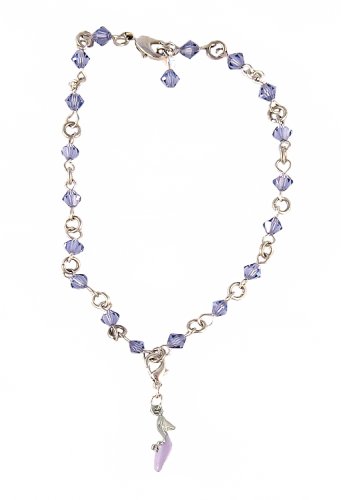 The perfect anklet for small to average size ankles.. Simply clip the loop where it most comfortably fits your ankle and let the extra length hang down as a cute and sparkly dangle. Adorable little charm dangles freely. Very easy to wear and lovely to look at. Measures 10". Made with genuine Swarovski (tm) crystal beads..