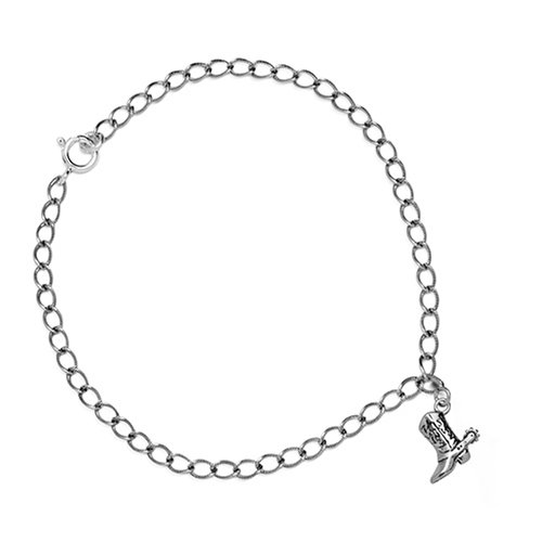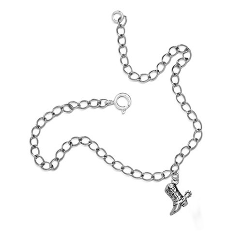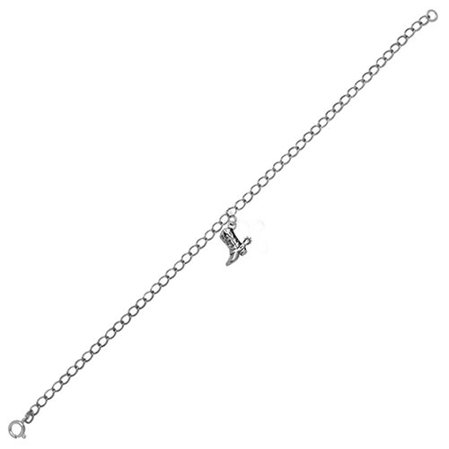 Charming boot anklet! Kick up your heels and enjoy this charming sterling silver anklet with its detailed boot with spur charm dangle. Measures 9" L with spring ring that fits in any part of the twist oval chain. Handcrafted from real sterling silver in New Mexico, USA.