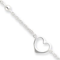Sterling Silver Dangling Heart Anklet - 10 Inch - Lobster Claw - 5.5 Grams in Sterling Silver - - Product Attributes: - Lobster Claw Closure -- Polished - - JewelryWeb Style: QTA32935SS - FREE gift-ready jewelry box
