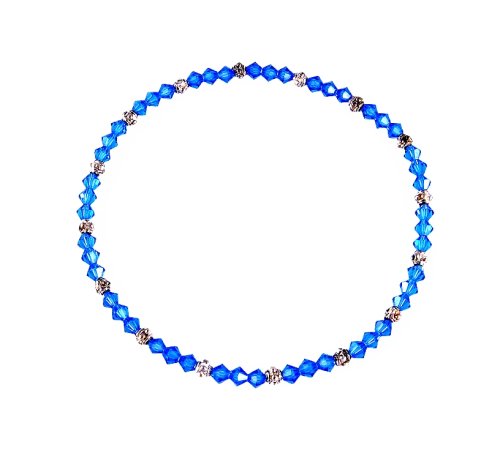 Buy Anklet - A70 - Stretch 4mm Swarovski (tm) Crystal and Silver Tone Heishi Beads ~ Sapphire Now