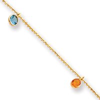 14k Multi-Colored Gemstone Anklet - 9 Inch - Spring Ring - in 14k Yellow Gold - Product Attributes: - Amethyst - Citrine - Garnet - Genuine - Peridot - Polished - Spring Ring - Blue topaz - JewelryWeb Style: QTA44759Y - FREE gift-ready jewelry box