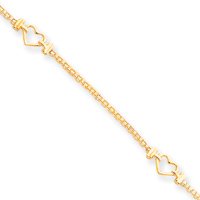 14k Polished 2 Open-Heart Anklet - 10 Inch - Lobster Claw - 2.5 Grams in 14k Yellow Gold - Product Attributes: - Lobster Claw Closure - Polished - JewelryWeb Style: QTA45674Y - FREE gift-ready jewelry box