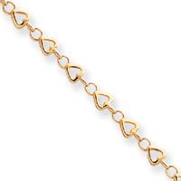 Buy 14k Polished Fancy Link Heart Anklet - 10 Inch - Lobster Claw Now