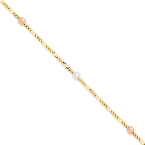 Buy 14k tri-colored gold figaro anklet, 10 inch Now