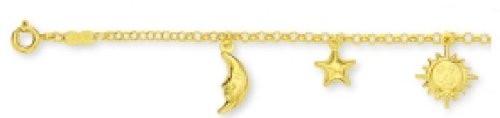 Moon, Star and Sun Ankle Bracelet - 5.0 grams in 14k gold (10 inch long ) - JewelryWeb Style: GA5736 - FREE gift-ready jewelry box