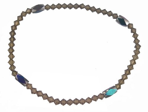 Buy Anklet - A86 - Stretch - Swarovski (tm) Crystal and Fire Polished Glass Beads ~ Smoky Quartz Now